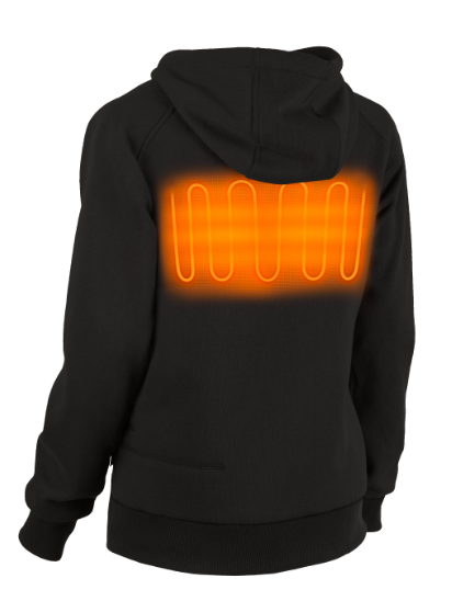 Vyhrievaná mikina s kapucňou M12™ pre dámy, napájaná batériou M12™ s vykurovacími prvkami z uhlíkových vlákien, vytvára a distribuuje teplo na hrudník a chrbát.