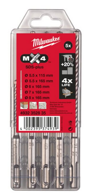 Sada vrtákov SDS-plus MX4 5ks (MILWAUKEE)